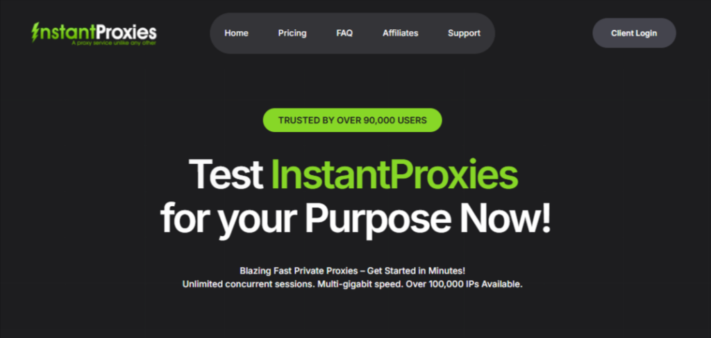 InstantProxies combines speed, anonymity, and reliability in its private proxy offering โ with a 99.99% network uptime guarantee and unlimited bandwidth that appeals to users running high-volume operations who cannot afford downtime.