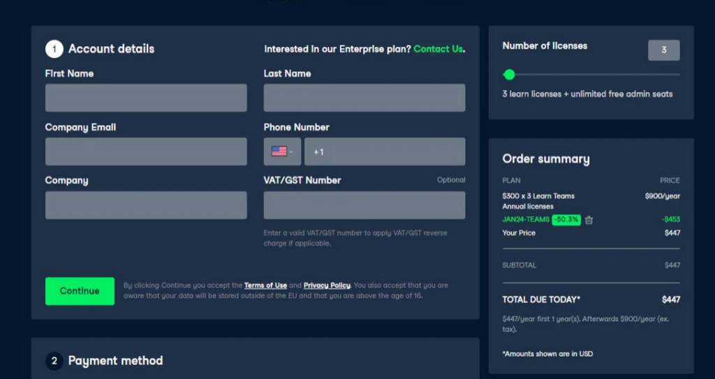 • Team and Enterprise plans provide group management tools and custom learning paths for workforce development.