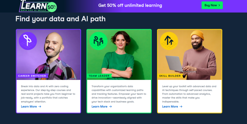 Before we get into the savings, let’s quickly talk about why DataCamp is one of the best platforms out there for learning data science, programming, and analytics. DataCamp offers a wide range of interactive courses, from beginner-friendly lessons on Python to advanced machine learning and deep learning topics.