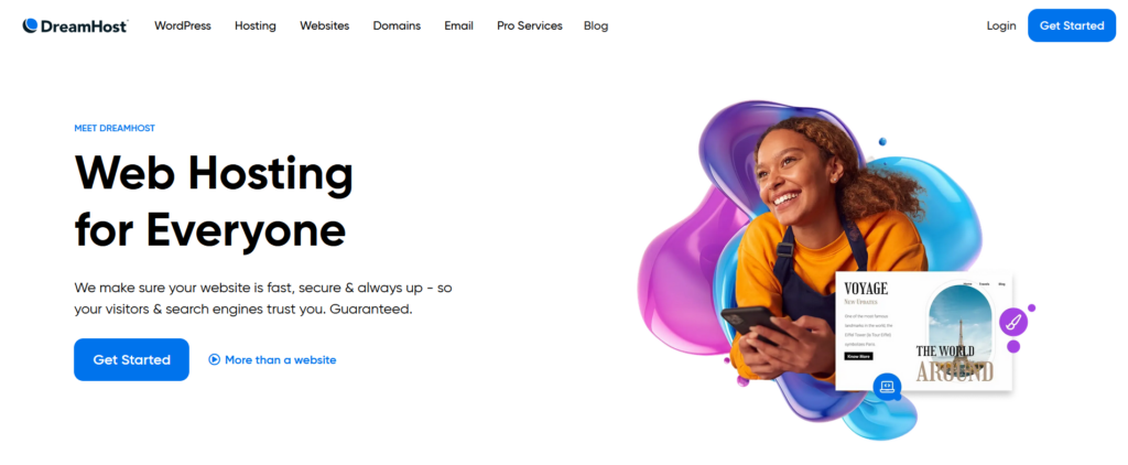 Overview: DreamHost provides shared, VPS, and WP hosting with a focus on privacy and open-source tools. It’s reliable but less feature-rich.