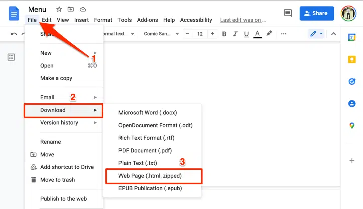 To save images from Google Docs, first open the document that contains the image. Then, click “File” and select “Download as Web Page.”