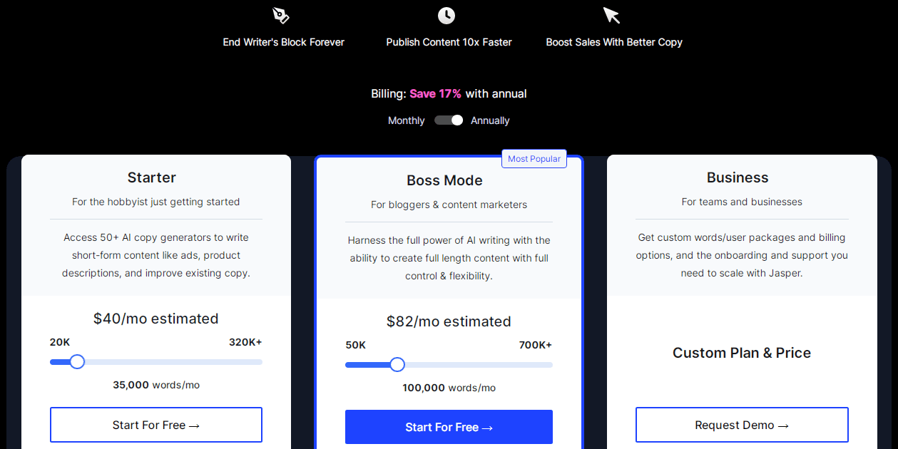 Entrepreneurs, content marketers, and agencies that spend hours every day creating unique content should consider Jasper AI.