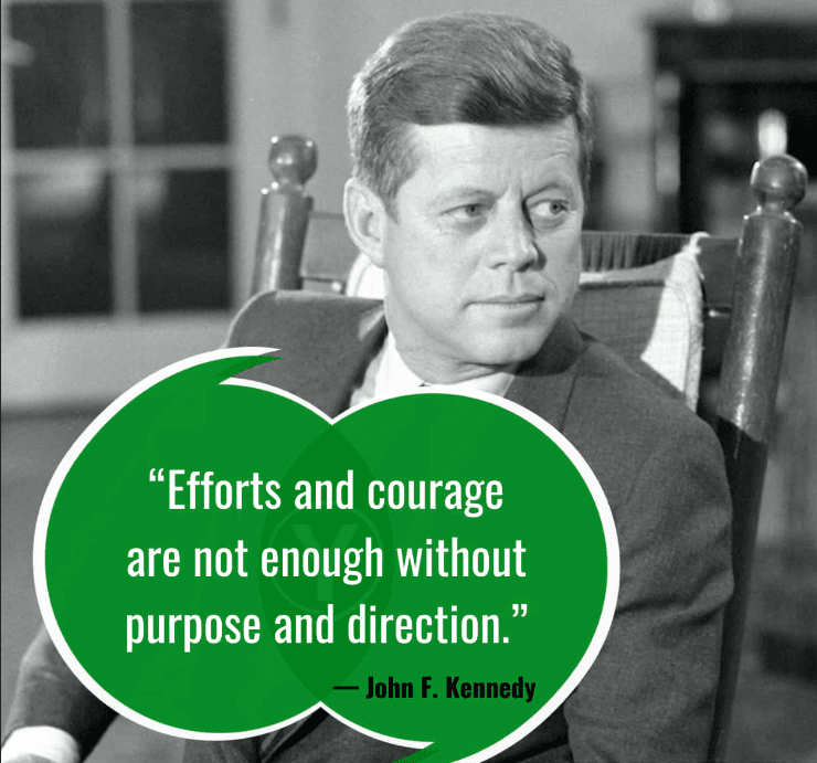 24. “Efforts and courage are not enough without purpose and direction.” — John F. Kennedy