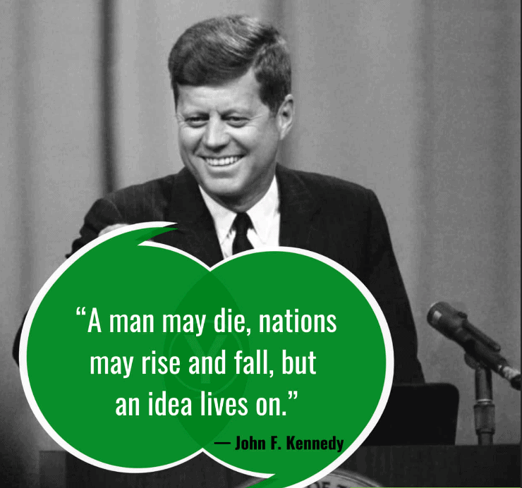 25. “A man may die, nations may rise and fall, but an idea lives on.” — John F. Kennedy