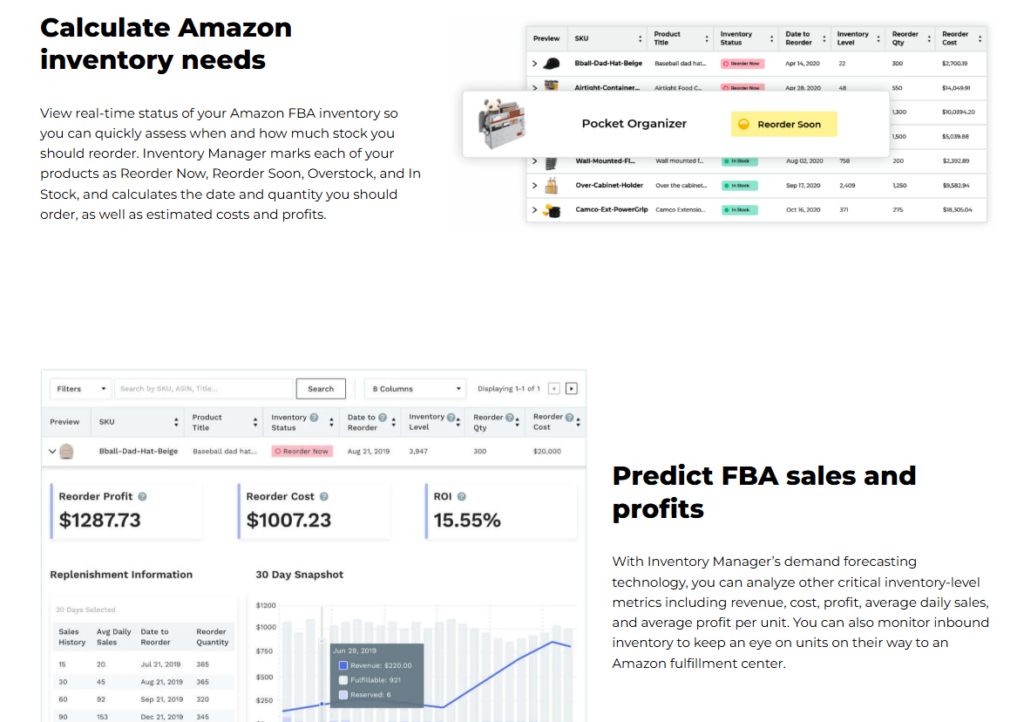 Managing inventory effectively is crucial for FBA sellers. Inventory Manager predicts when stock will run out and prompts reorder alerts based on sales velocity and lead times. Its Forecastly integration enhances predictive accuracy for seasonal products, ensuring you never understock or overstock.