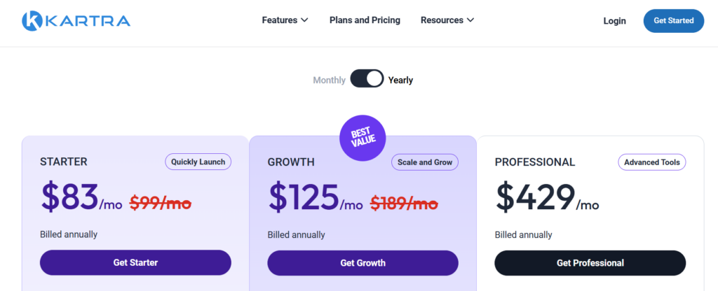 • The Enterprise plan requires contacting Kartra for a custom quote, as it’s tailored to specific business needs.