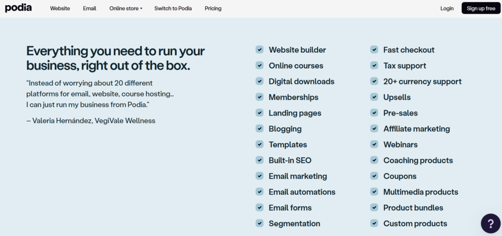 Whether you’re a course creator, coach, freelancer, writer, or digital product seller, Podia brings together the essential tools you need to: