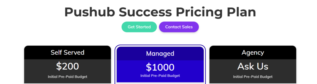 - Full Campaign Management is offered as an additional service, but specific pricing is not listed, and you must contact Pushub directly for a quote.