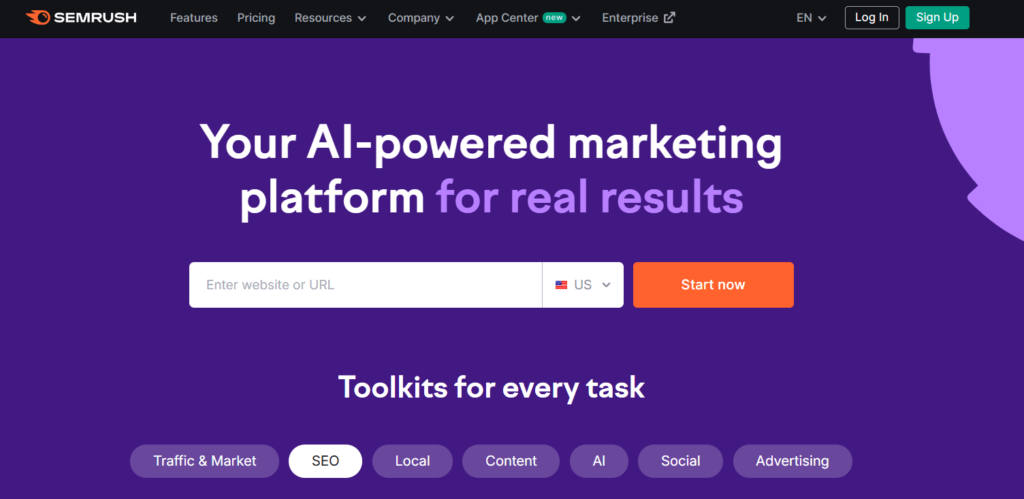 Semrush is like a superhero for digital marketers. Launched in 2008, it’s grown into a powerhouse trusted by brands like Tesla and Forbes. Its tools cover everything from keyword research to site audits, backlink tracking, and AI-driven content creation.