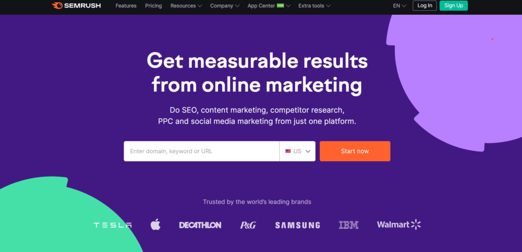 Semrush is like a superhero for digital marketers. Launched in 2008, it’s grown into a powerhouse trusted by brands like Tesla and Forbes. Its tools cover everything from keyword research to site audits, backlink tracking, and AI-driven content creation.