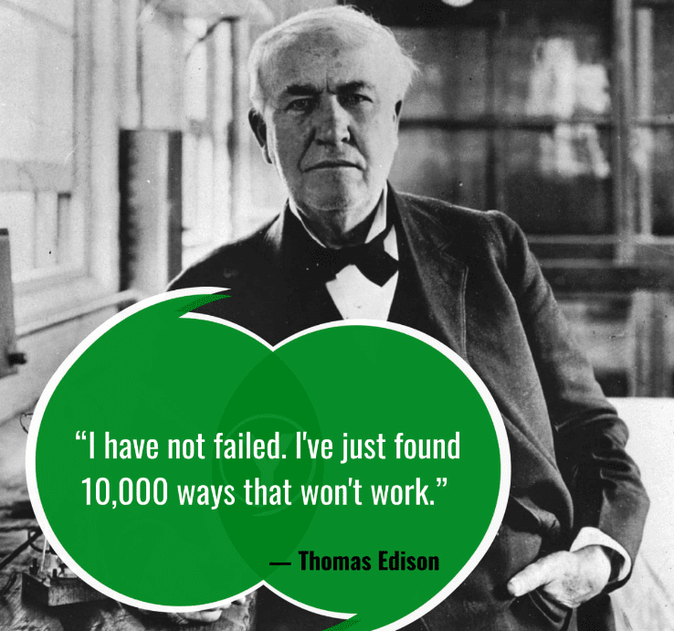 21. “I have never failed, I’ve only shown the way I did it before doesn’t work.” ― Thomas Edison